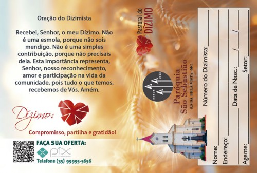 3523 Carteirinha do Dizimo Personalizada - Verso para 2 anos