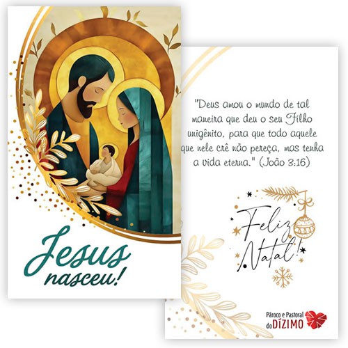 • Cartão modelo postal com opção de personalizar: Inserimos os dados da Paróquia, logo, assinatura impressa, trocamos a mensagem do verso, etc.