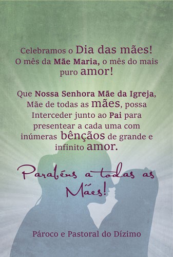 • Cartão modelo postal com opção de personalizar: Inserimos os dados da Paróquia, logo, assinatura impressa, trocamos a mensagem do verso, etc.