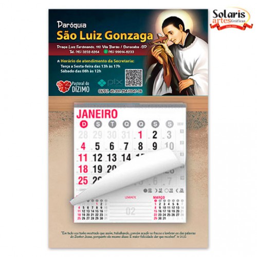 Calendário 18x27cm com bloco 2026 Personalizado São Benedito